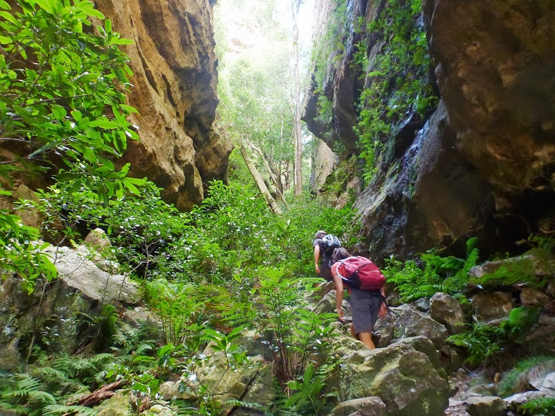 For a couple of us, the promise of lunch seemed to be the only thing keeping us going upwards. It was quite steep. We had also just been path finding in the undergrowth for a while. It had involved a little bit over and undering, skirting and summiting boulders and a further array of daunting obstacles. We managed to face them gallantly and efficiently, up until the slope up to the Devils Hole, I think.