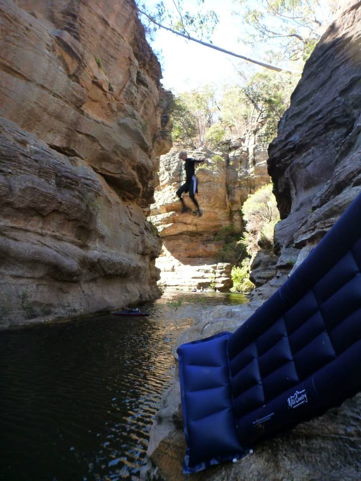 We started down stream of the big corner and quickly found our paddling arms and a couple of holes in old lilos, no real troubles though. There is so much to enjoy on this river, and it was a day for paddling, scrambling, pirating, floating, finding the best jump ins (and getting more bold as the day went on) and exploring the ends of other canyons connecting to the Wollangambe.