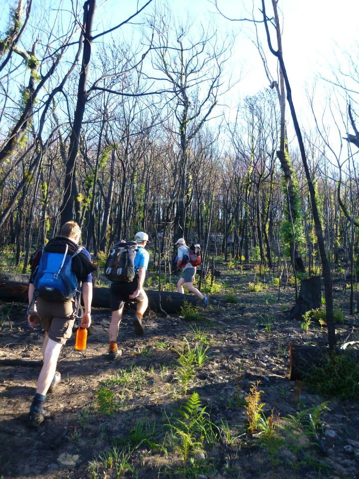 At Camel Saddle I had a bad case of bushwalkers memory (“I’m sure it’s just round the corner!”). The track to continue is actually up higher at a second small saddle (as per the track notes). We wasted some time sorting this out then found the right track. We decided we still had time to continue this way and made quick time. K and I sorted out the navigation and we soon found the new exit gully along Claustral Brook. I was pleased to see that if you watch the map and features and direction of the creek then the exit gully is very clear.
