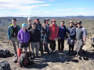 From the moment the trip went up on the walks programme a few weeks ago, interest in this trip was huge. 35 people had signed up for this trip before I marked the trip as full and more people emailed me after that wanting to be added to the waiting list. The limit is really around 20. Unfortunately in the final day before the trip many people decided to pull out. So in the end, a party of 14 assembled at Bell station on Saturday morning, enjoying the unseasonally warm and dry weather for the time of year. There we sorted out gear, repacked bags, and got ready for the weekend.