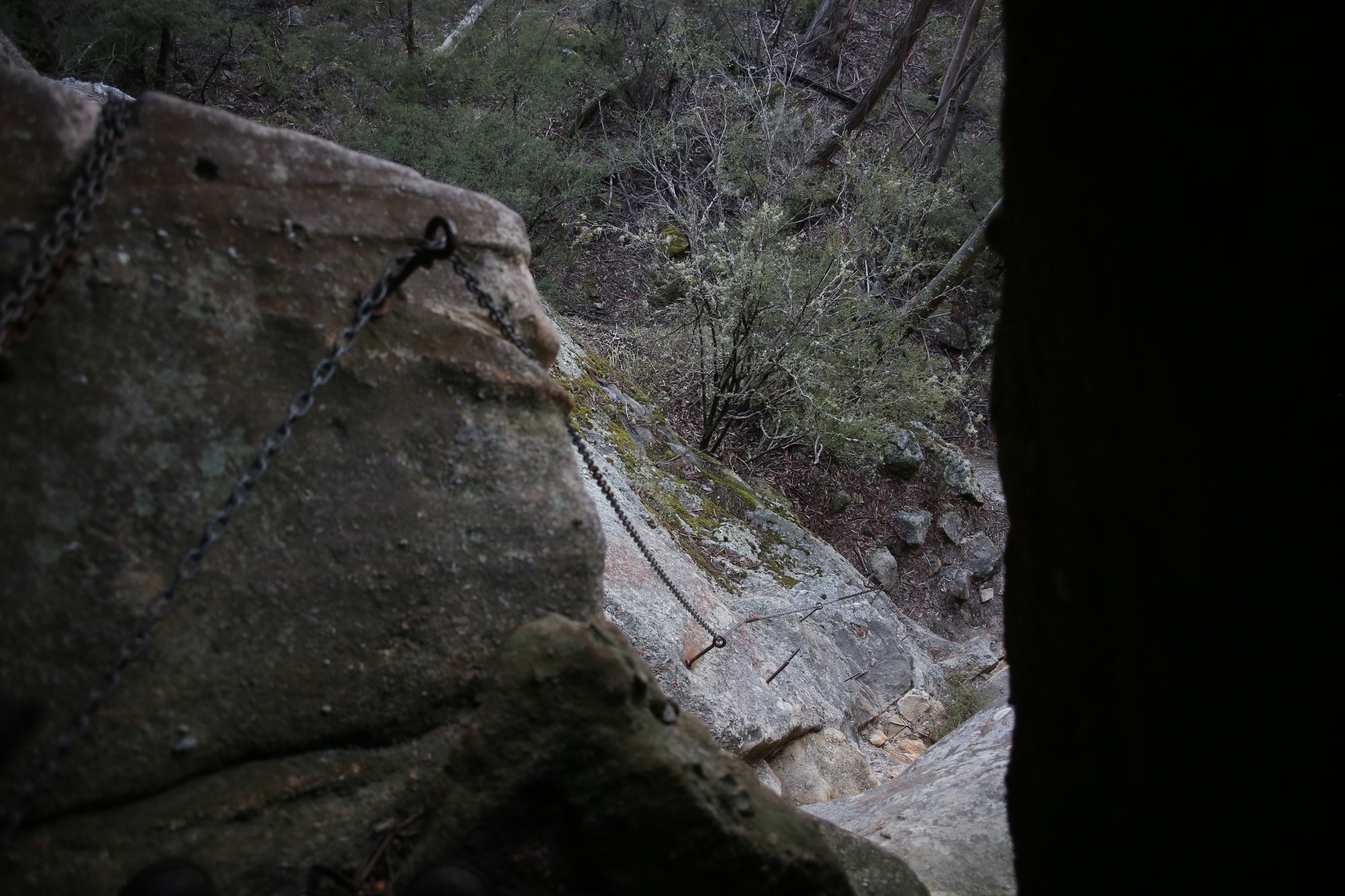 Christian, Luke and I examined the Thommos Chains and Luke made a climb down, but declared it unsuitable for the party. I have done it once before but was terrified. So we took the easy pass off the side of Mt Dingo.