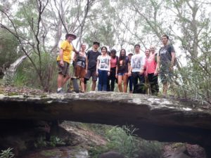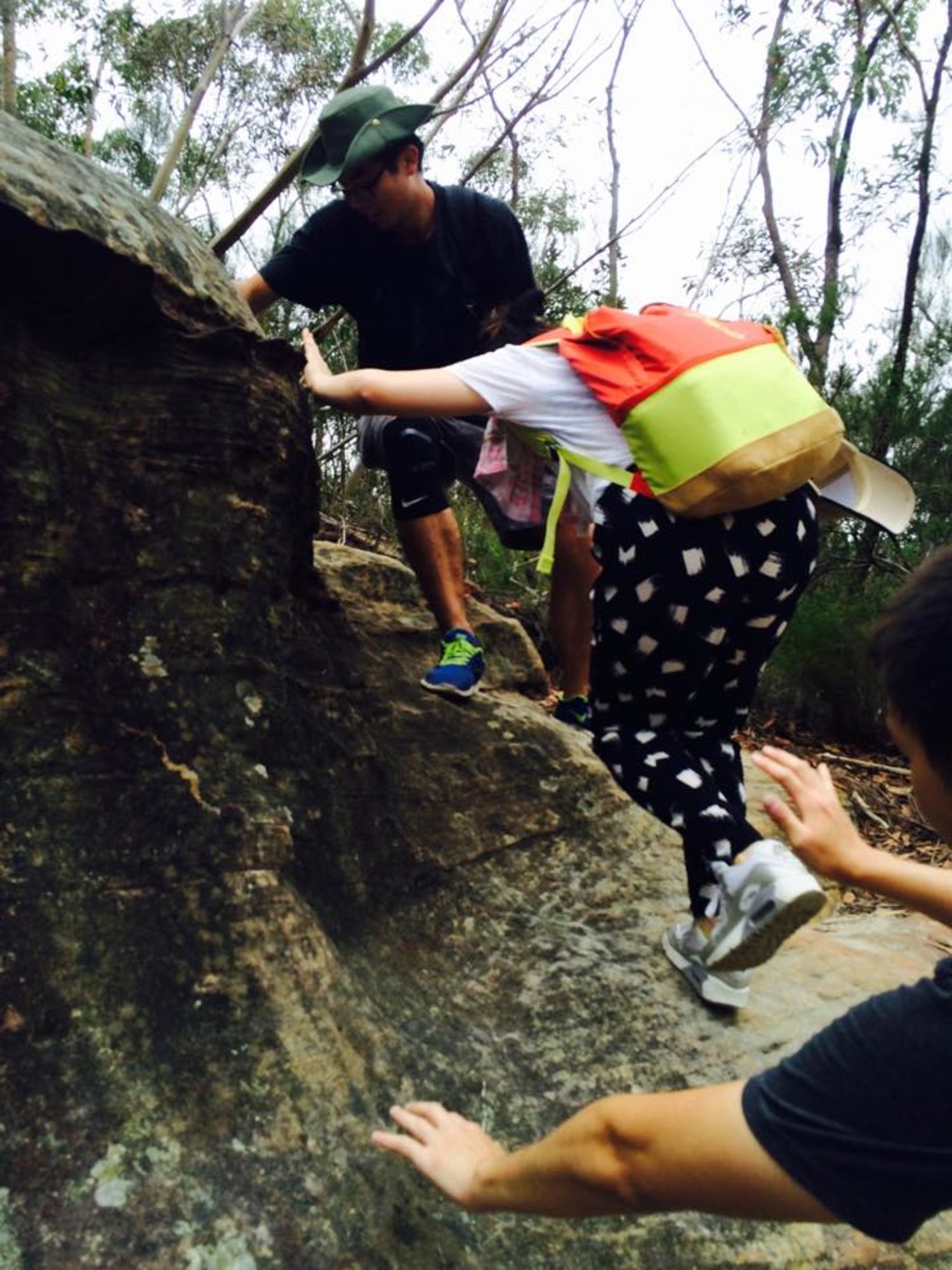 The whole of Bantry Bay, and the western shore opposite the mouth of the bay, are unspoilt because houses were not allowed within line-of-sight of the explosives store. It is extraordinarily wild for somewhere in the middle of Sydney, and some sections are quite rough, and feel like a real bush track. We saw a Lyrebird near the Natural Bridge, where we also took lots of photos of ourselves on the bridge, and enjoyed the mild scrambling to get up to The Bluff, where we took a good break to enjoy the views right down the bay and back to the skyscrapers of the CBD. Two people had leeches in their socks, so we patched them up and took lots of photos of the leeches.