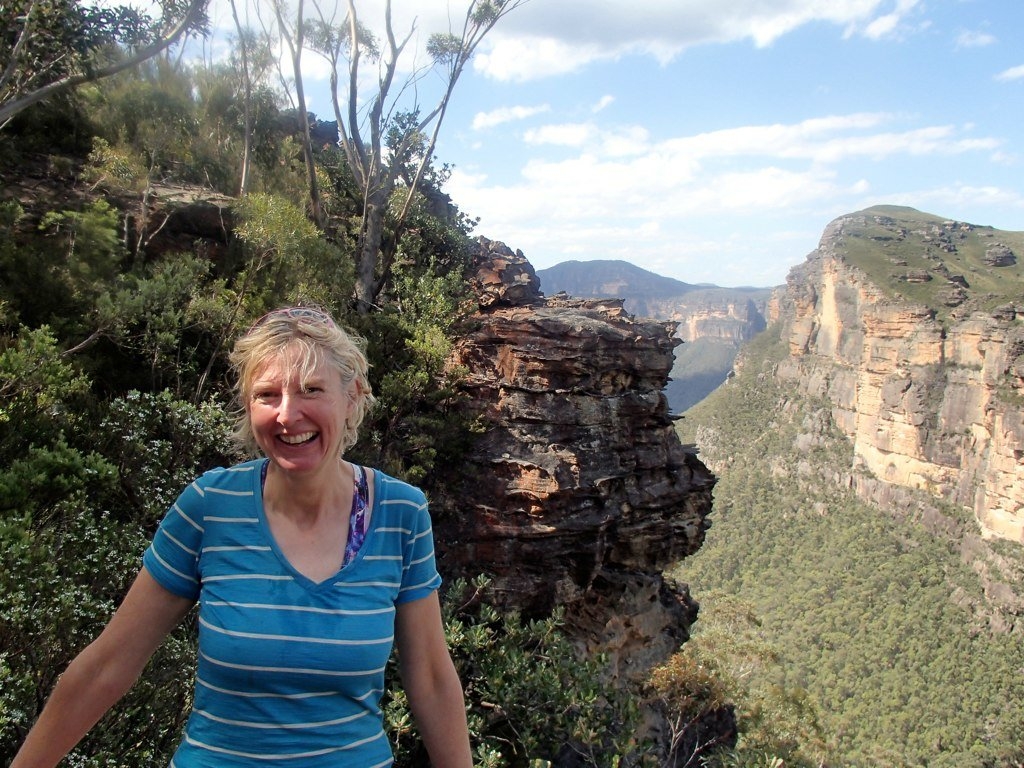 After the abseil there is a swim and then a scramble through some boulders to wher the canyon ends at the justly famous cliff-top and waterfall, which we reached a bit before 3.00. The views from the rock platform here are just magnificent, and we changed out of our wetsuits and had a leisurely lunch. The water in the little ‘spa pools’ here is much warmer, as if is exposed to full sun. Eventually we headed back up the canyon to the exit gully and strolled back to the car, stopping on the ridge a couple of times for photos and chit-chat, and finally arriving back at 5.00.