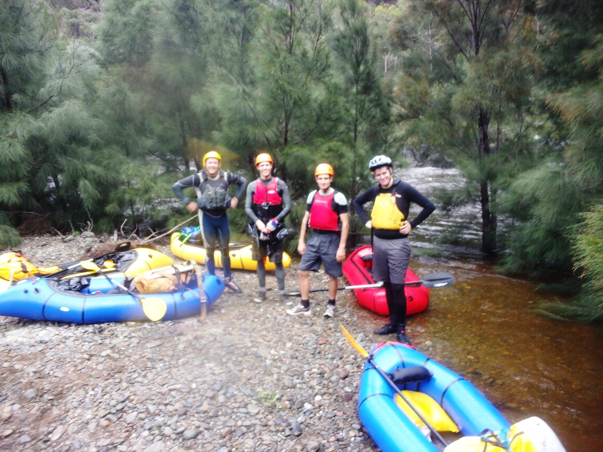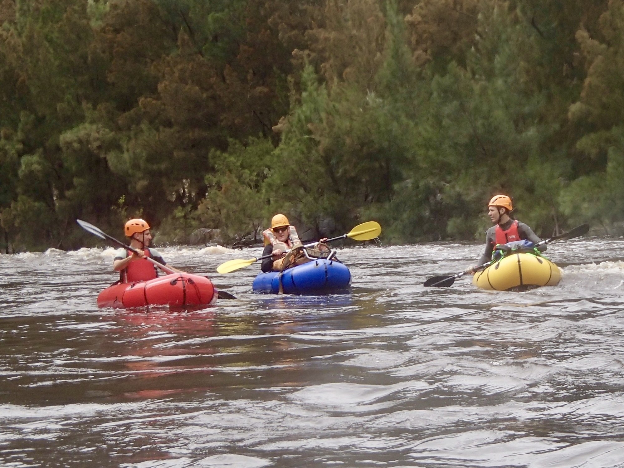 Packrafting is a great alternative when there has been too much rain for safe canyoning. We chose to do the 16km stretch of the Shoalhaven between Great Horseshoe Bend and Bungonia Creek because we did not have time to do the classic Colo Gorge trip, which really needs two days, and we were after ‘bushwalking on water’ rather than adrenalin-filled whitewater, which can be found closer to Sydney. This section contains the justly famous Blockup Gorge and some fun Grade II rapids. There is supposed to be a Grade III rapid, but neither this trip, with the water at 1.24 nor the last time we were through here with the water at 1.50, did we encounter anything that could be called Grade III. It must exist only when the water is very low.