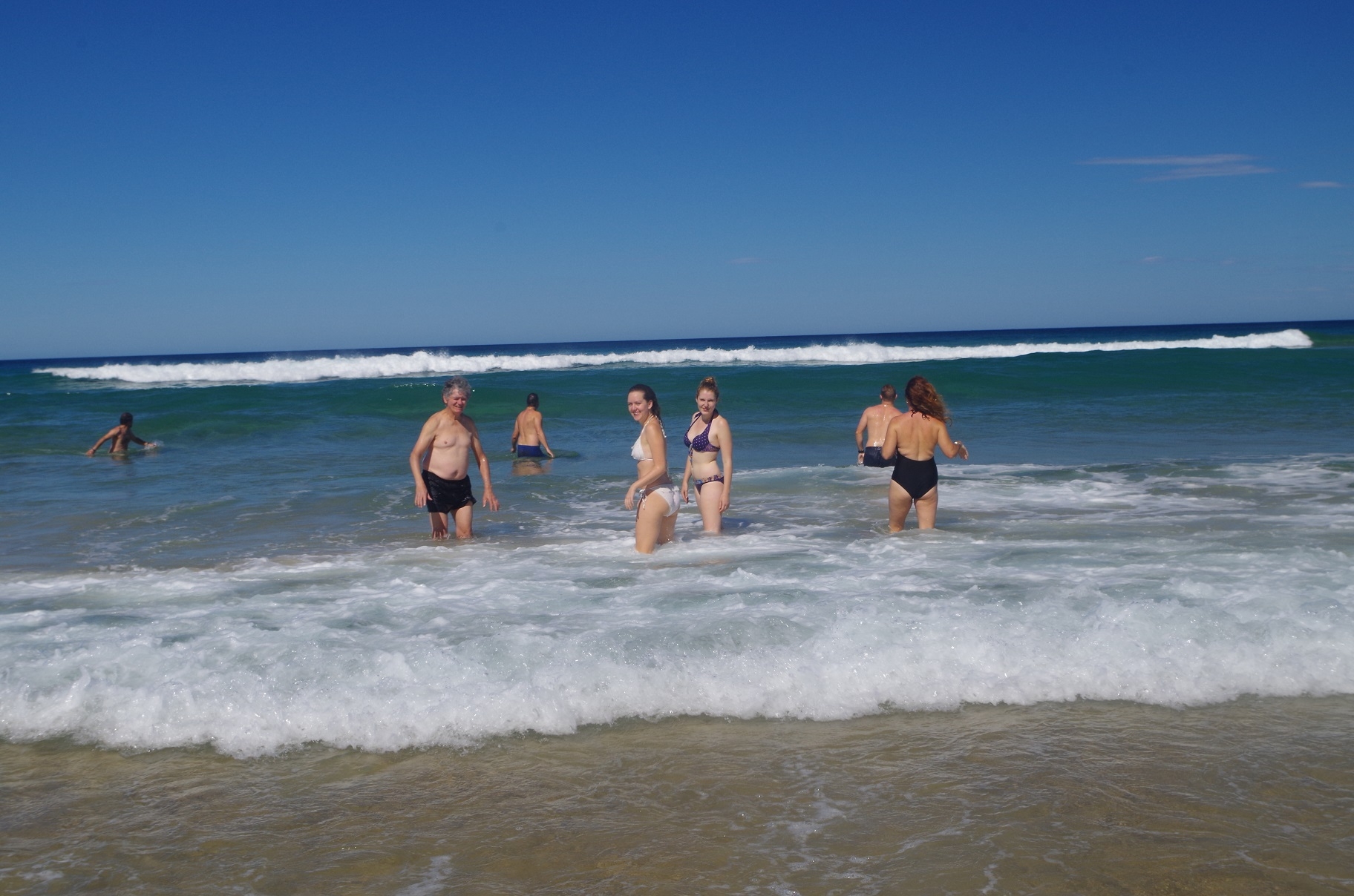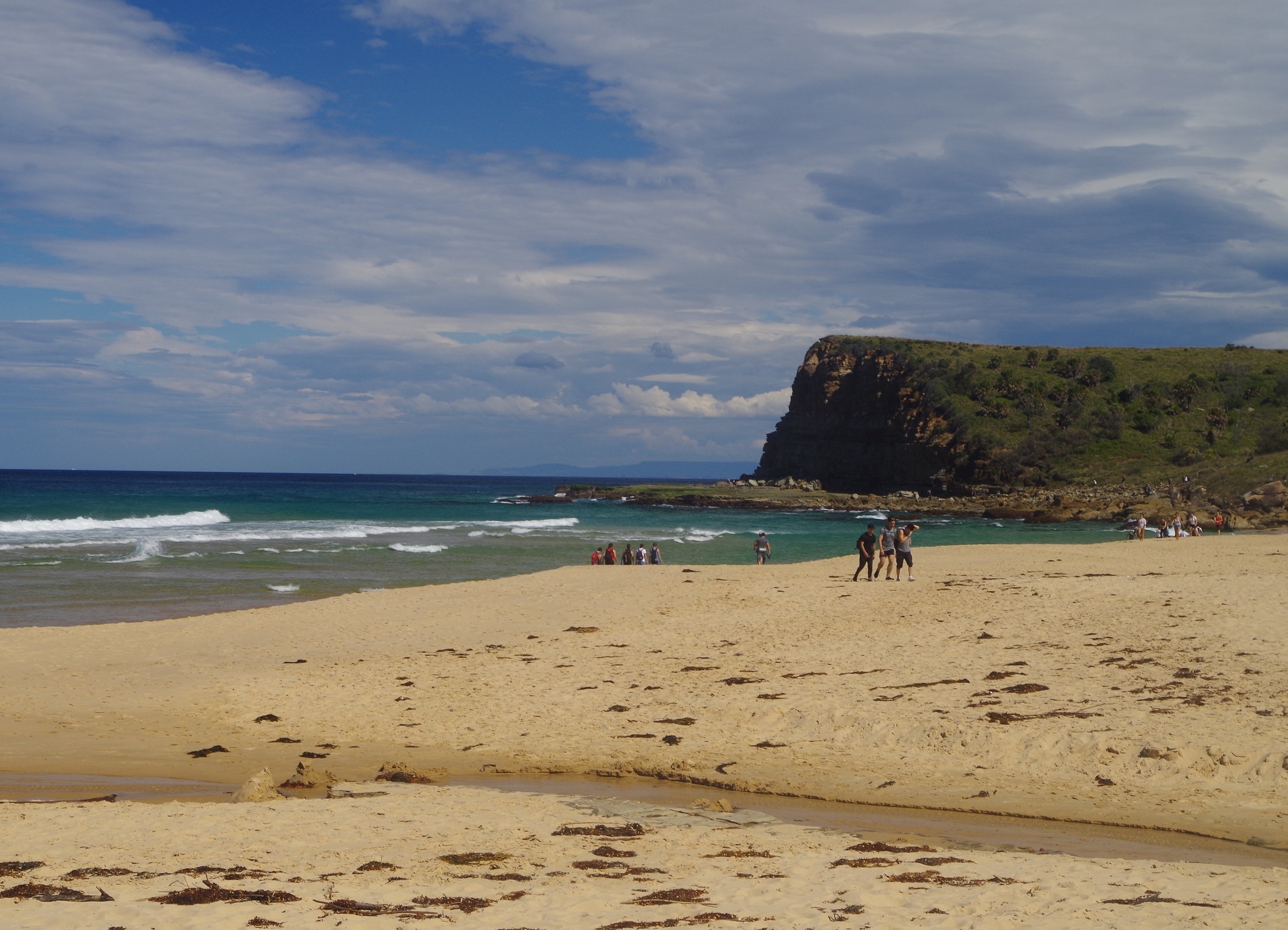 So we entered the beach and walked along to the patrolled section where we settled on a rocky outcrop for lunch. Some of us had a swim as well (see photos by Cathie – within my link).