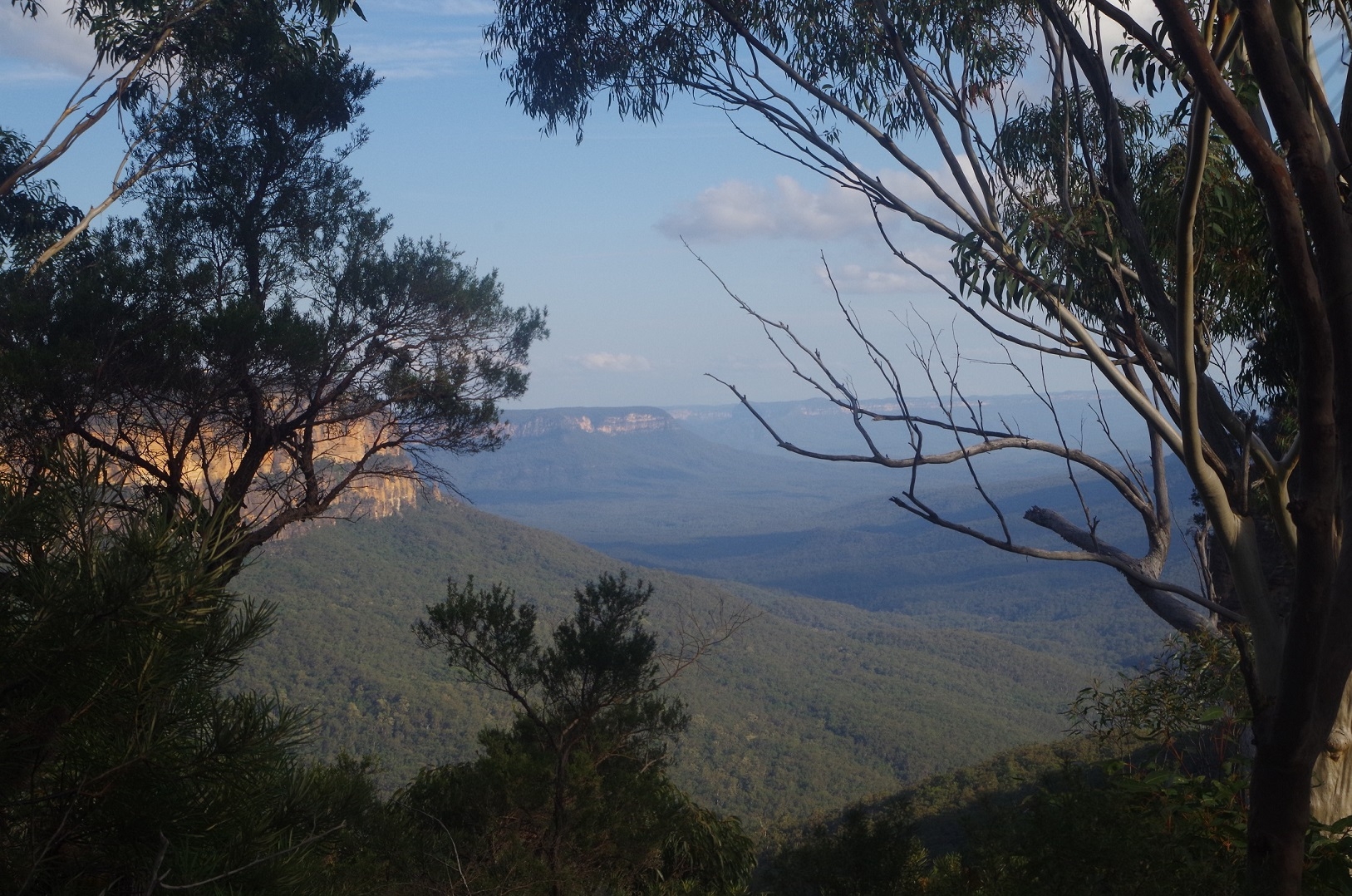 Only a short distance on we found the side track to Inspiration point (and eventually Robert’s Pass). (If you continue straight on, Lillian’s Bridge track eventually ends up at the Fairmont Resort). We went down the Inspiration Point Track until we got to a choice between going to Gladstone Lookout or Moya Point. Moya Point was much closer so we took that short track and once there settled down for lunch – and enjoyed the view over Jamison Valley.