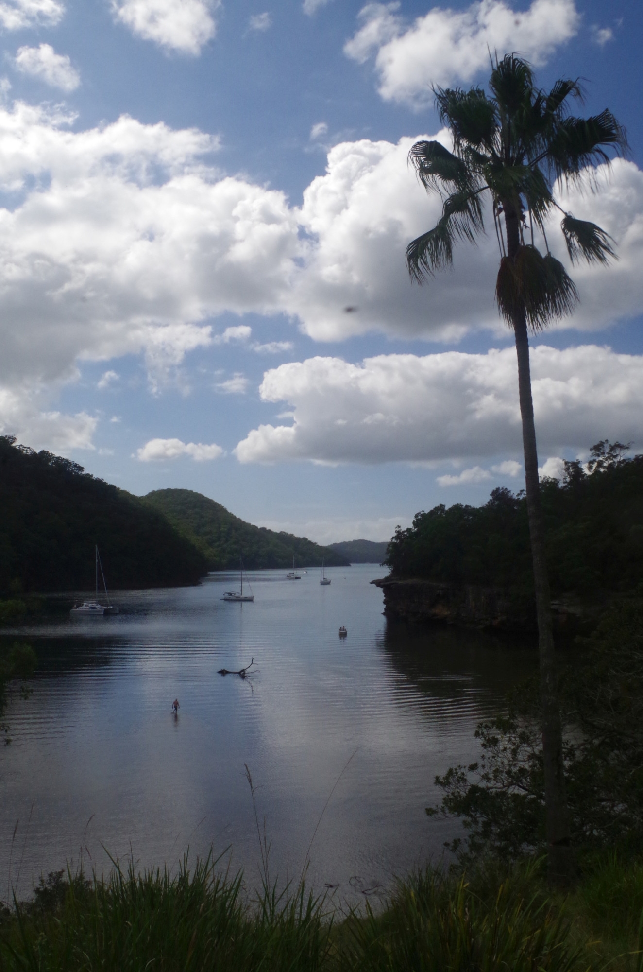 I had 8 people originally sign up, but 2 withdrew for health reasons that morning. Jenny (Junrou) had missed her connecting train by only two minutes as trackwork on the Illawarra Line had mucked up the timetable, and also added 20 minutes to trips on that line. I figured that as there is usually 10-15 minutes used at the start of a walk, I could afford to allow her to get on the next Cowan train an hour later, and she could catch up with us when we had a break at Jerusalem Bay, which is 45 minutes from Cowan Station. Meanwhile though, Georgina had overlooked the requirement to be in the last four cars of the train at Cowan, and got carried on to the next station, Hawkesbury River. She was very lucky though as there was another train due into Hawkesbury River just 3 minutes after her train got there, and it would take her back to Cowan (and it was a 4 car train so no mistakes that time!). That added another 25 minutes to our wait time at Cowan, so that Jenny would catch up with us in less than half an hour at Jerusalem Bay (which she did). Meanwhile at the Bay we met up with a couple of former members of SUBW who remembered me, and also knew Andrew Cox from the 1990’s period in SUBW.
