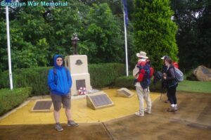The five of us met up at Hawkesbury River railway station during a short rain shower, which the radar showed seemed to be targeting Brooklyn in a narrow rain band! The shower didn’t last long so we set out for our first of 3 short walks. This walk took us alng the main road into Brooklyn and then to the War Memorial and its park, with another short rain shower on the way. Pausing briefly to note the wreaths laid there for Anzac Day (this day) and aso the little monument noting the involvement of a Brooklyn local with the Red Baron (Manfred von Richtofen) in WW1. I will mention the story of The Red Baron later below.