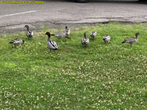 So it was just a matter of returning home on the train. I got off at Gosford and said goodbye to the others. On my own walk home I saw a family of ducks beside the road (see photo, and today I spotted a pair of Millipedes getting to know each other better on a palm tree trunk. I wonder what they were saying?