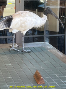 After that, we continued along Macquarie Street to Sydney Hospital, where I showed Alper and Qi the shortcut through it to get to The Domain (the hospital also has a good coffee shop). So we crossed The Domain which, until the 1950s, had an unbroken connection to the Royal Botanic Gardens until the brainless NSW government of the time built the canyon of the obnoxious Cahill Expressway cutting the two in half. The pathway across The Domain comes out opposite the Art Gallery of NSW, but we didn’t go in (you can spend half a day looking around it, and except for special exhibitions like the current Archibald Prize, is free to enter). Opposite the Art Gallery is a cafe with an Ibis standing on a table with a “reserved” sign on it (see photo). Then I asked Alper and Qi to pose in front of a banner on the bridge over the Cahill Expressway canyon which stated “Love Your Nature”. Pity the government didn’t think about loving nature when the Cahill Expressway canyon was built (we will see more of the Cahill Expressway later on).