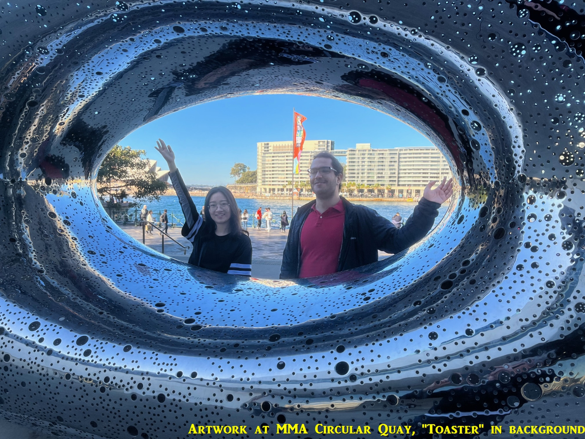 Anyway, enough of stories of the massive blunders of the NSW government of the 1950s. After leaving this site, we returned down to The Rocks at Argyle Cutting (which might be a good abseil site for some people) and down to the west side of Circular Quay. We posed at an artwork outside the Museum of Modern Art, and then finished the walk by going to Circular Quay Station for trains home. The whole walk took two and a half hours and covered a few out of the way places that people on a tour might not encounter. Everyone appeared to enjoy the walk.