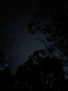 Out in the Blue Mountains the light pollution is much lower, athough Sydney’s glow could still be seen in the eastern horizon. The meteor shower went better than I expected, everyone managed to see atleast a couple of shooting stars, and everyone was very happy with the result. Shooting stars are notoriously hard to photograph, so you’ll have to do with our long exposure photographs of the starry sky, although Yash did managed to get one in a timelapse. A few people took this opportunity to eat their packed meal (is it breakfast or dinner?), and the vibes were good! Many of us (myself included) had never seen a shooting star, so to see so many was a spectacular sight that we’ll remember for a long time!