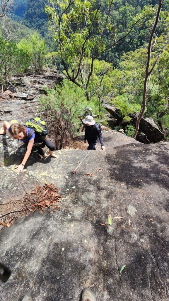 We crossed Glenbrook Creek for the last time, where the rocks had been very dry and easy to pass through due to the sun. The last section back to blaxland was a bit more STEEP and required some scrambling. the temps were already over 30 degrees and I had to remove my pant legs to get cooler.