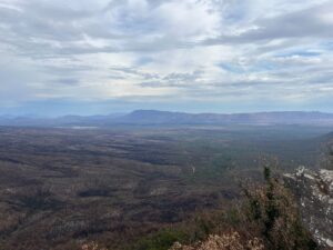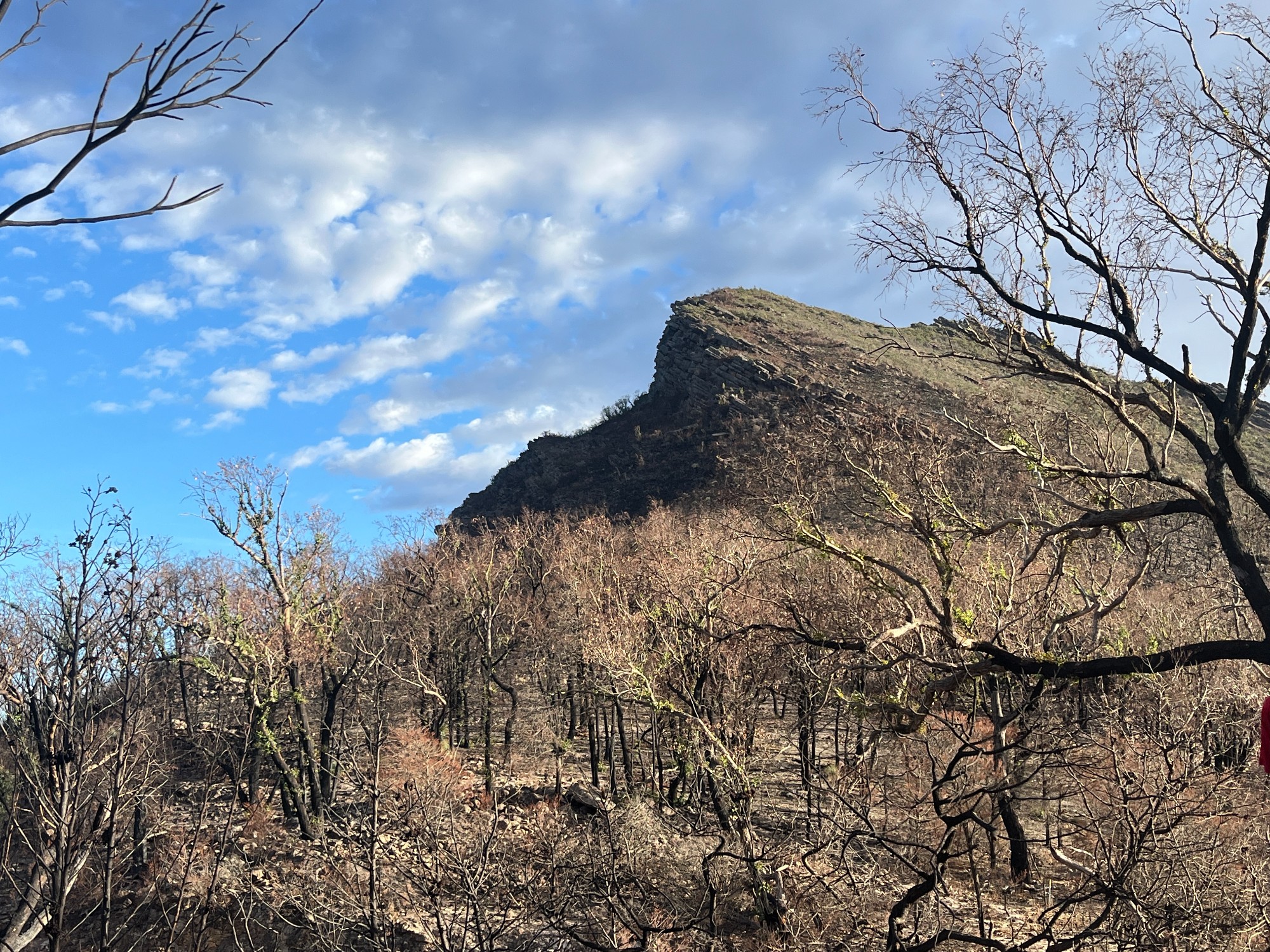 The bench on the lookout was burnt and so is the bush surrounding it. Trees are all covered with charcoal and the ground is nothing but ashes. The irregularly shaped mountains all look really scenic but are unfortunately affected by the fire. While this freshly burnt bush looks empty and easy to traverse, it’s certain that within a few years, the regrowth of shrubs will render it too dense to traverse. While the density of the shrubs depends on the weather and Grampians being much dryer might not receive the tremendous rainfall that has led to Kanangra’s overgrowth, it’ll certainly take years, if not decades, for the regrowth to stabilise. The bushwalking tracks that we still see might become overgrown in a few years time and until this regrowth stabilises it’ll be hard to traverse.