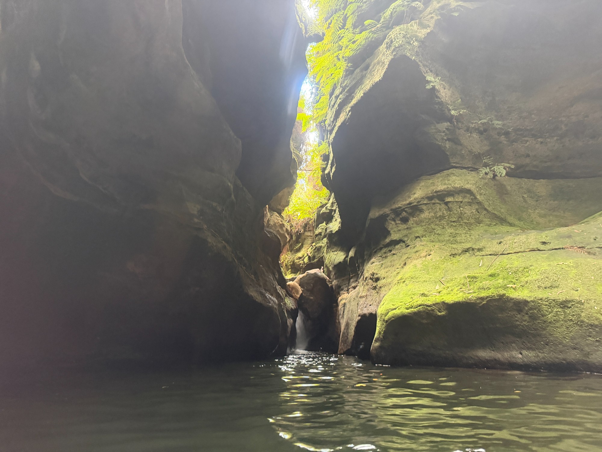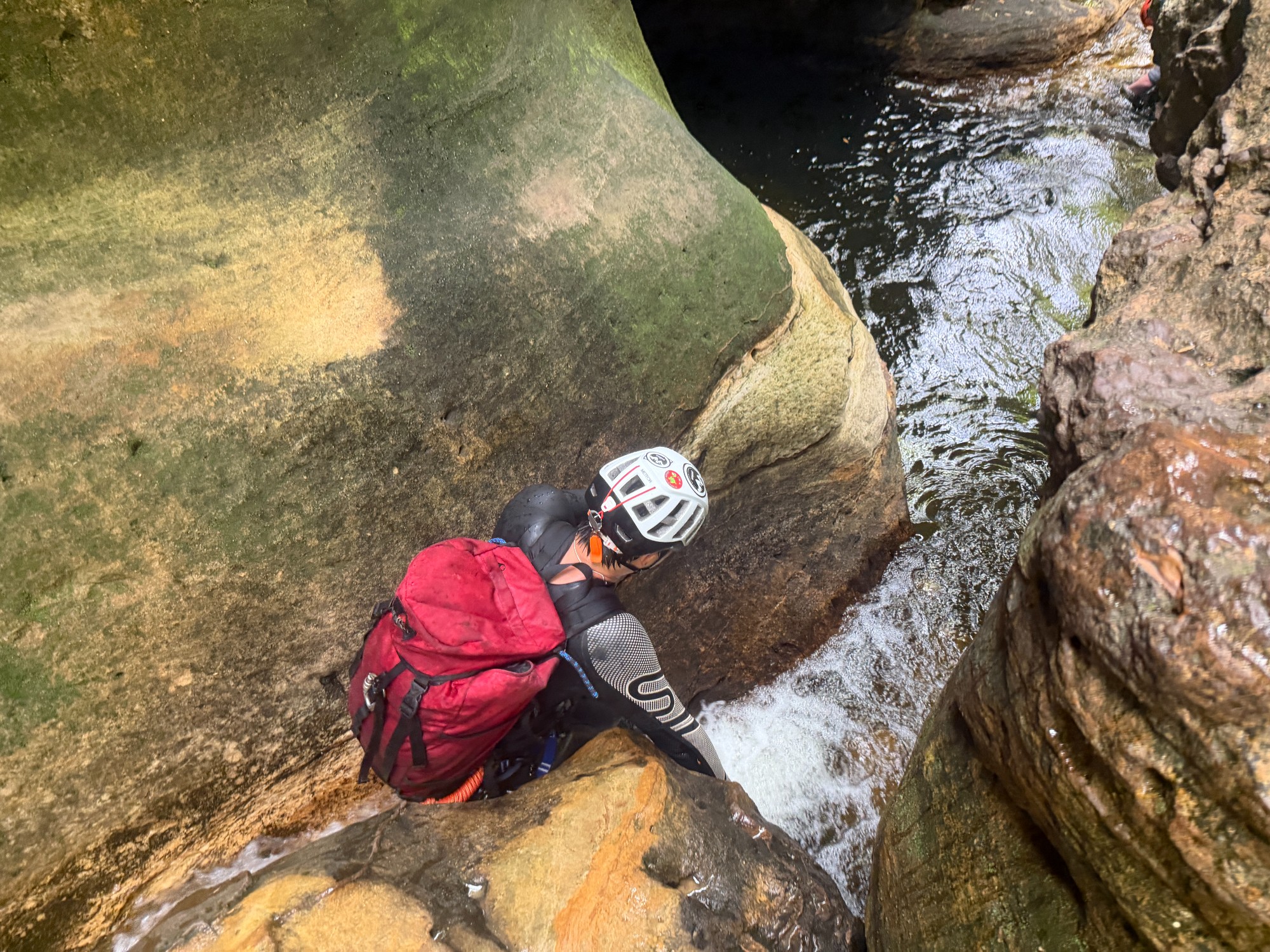 We’ve gotten to this spot where a jump seemed the most obvious option. I avoided the jump by scrambling through a tiny crack underneath where the water flows through. Vincent, after much consideration, decided to jump. A count from 3, followed by a big splash, and Vincent’s complaints about shoulder pain. Fortunately, the pain lasted for only a few minutes and didn’t evolve into anything serious.