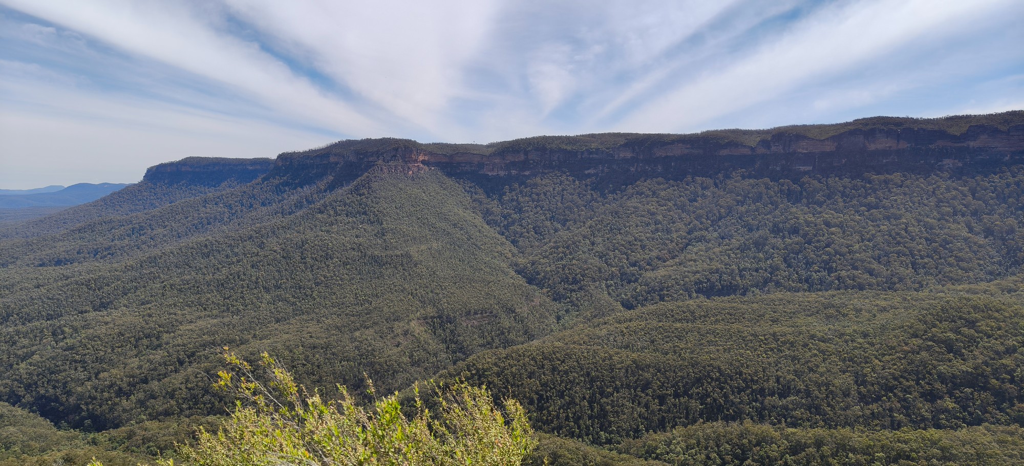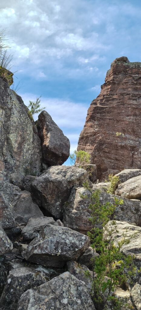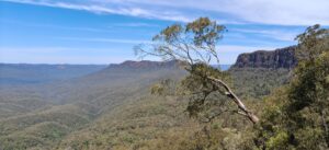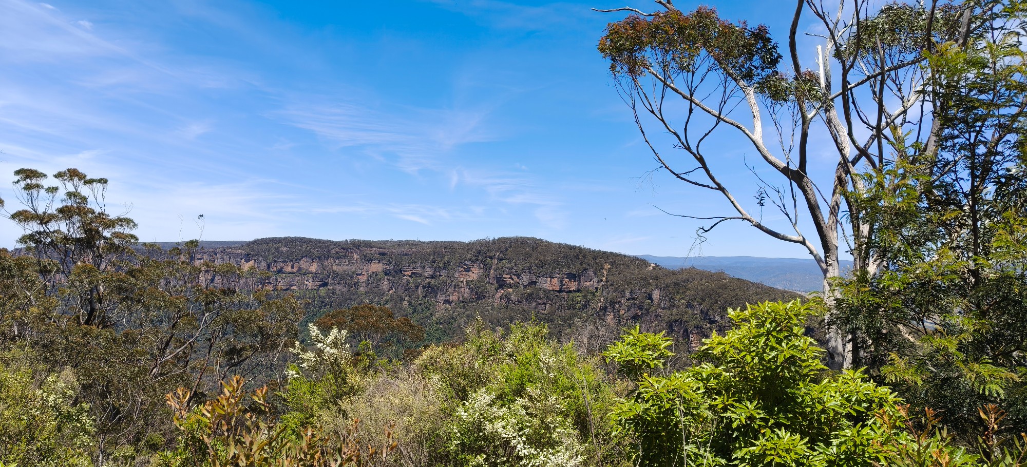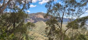 The first part of the walk via the fire trail was accompanied by the relentless sun, flies, breathtaking views of the blue mountains, and a cone we found on the side of the road. Amused by this wondrous discovery, I decided to retrieve the cone from the bushes, and carried it until I was too tired to continue.
